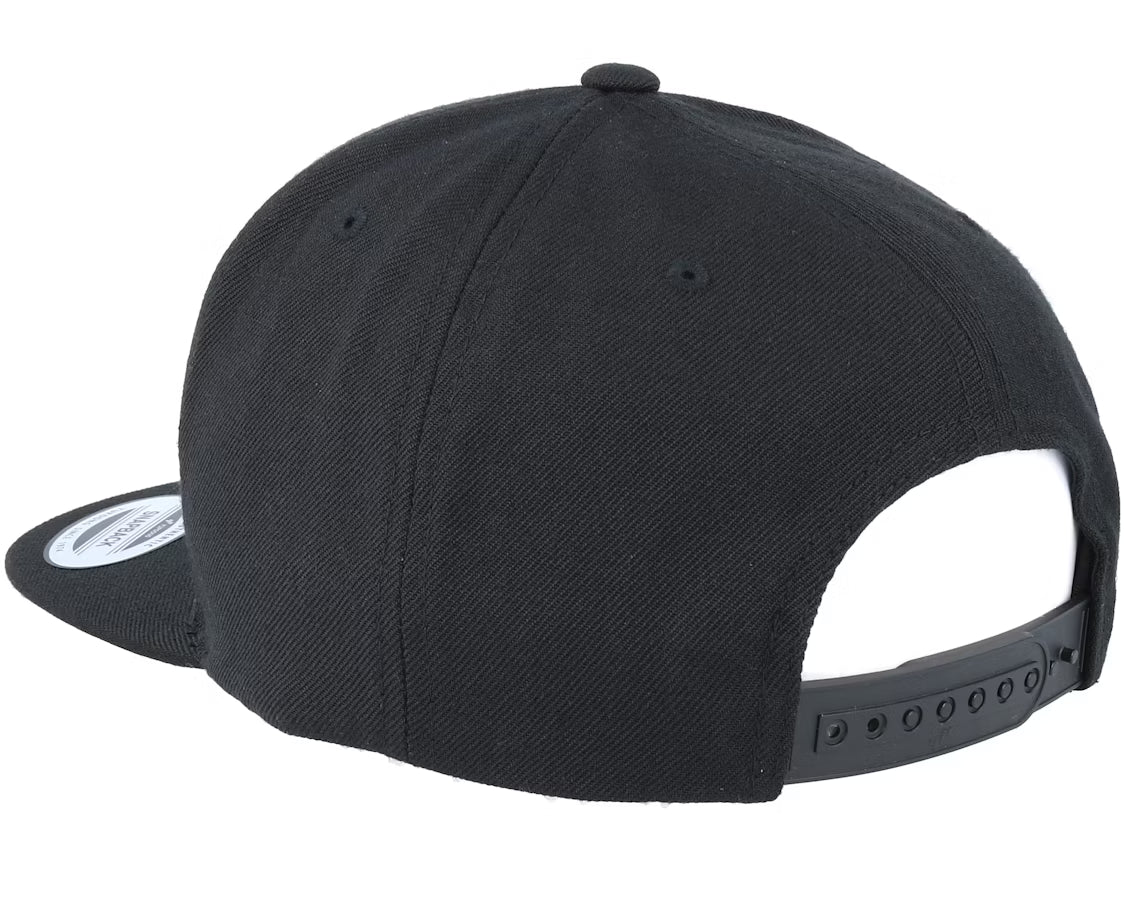 Snapback -lippis suoralla lipalla ja logobrodeerauksella. Takana muovinen säätösolki.